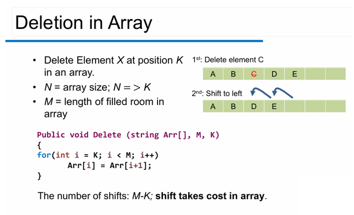 Shift: inserting or deleting just one element in the middle of the array (note: not in the last room) is computationally expensive.