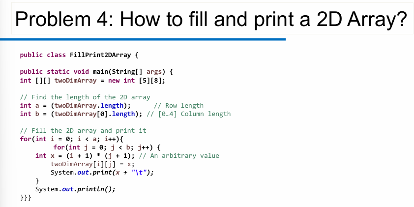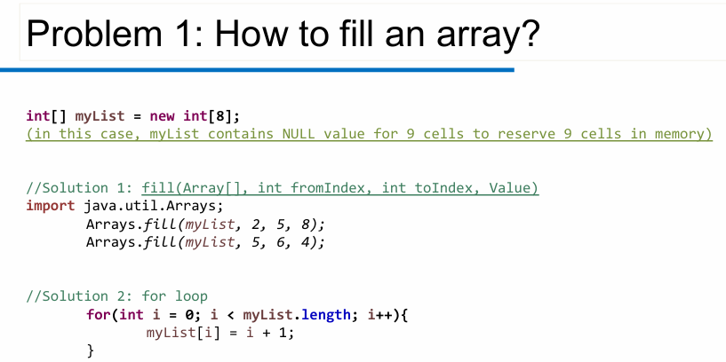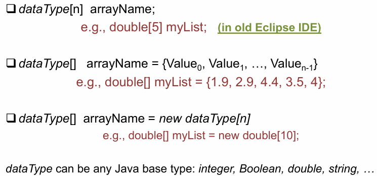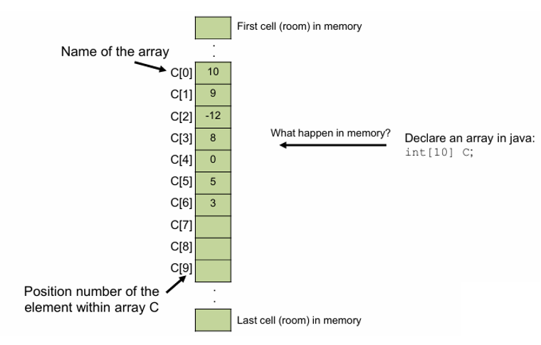 - An array is a sequenced collection of same types of variabels. Each variables (or element) has an index.